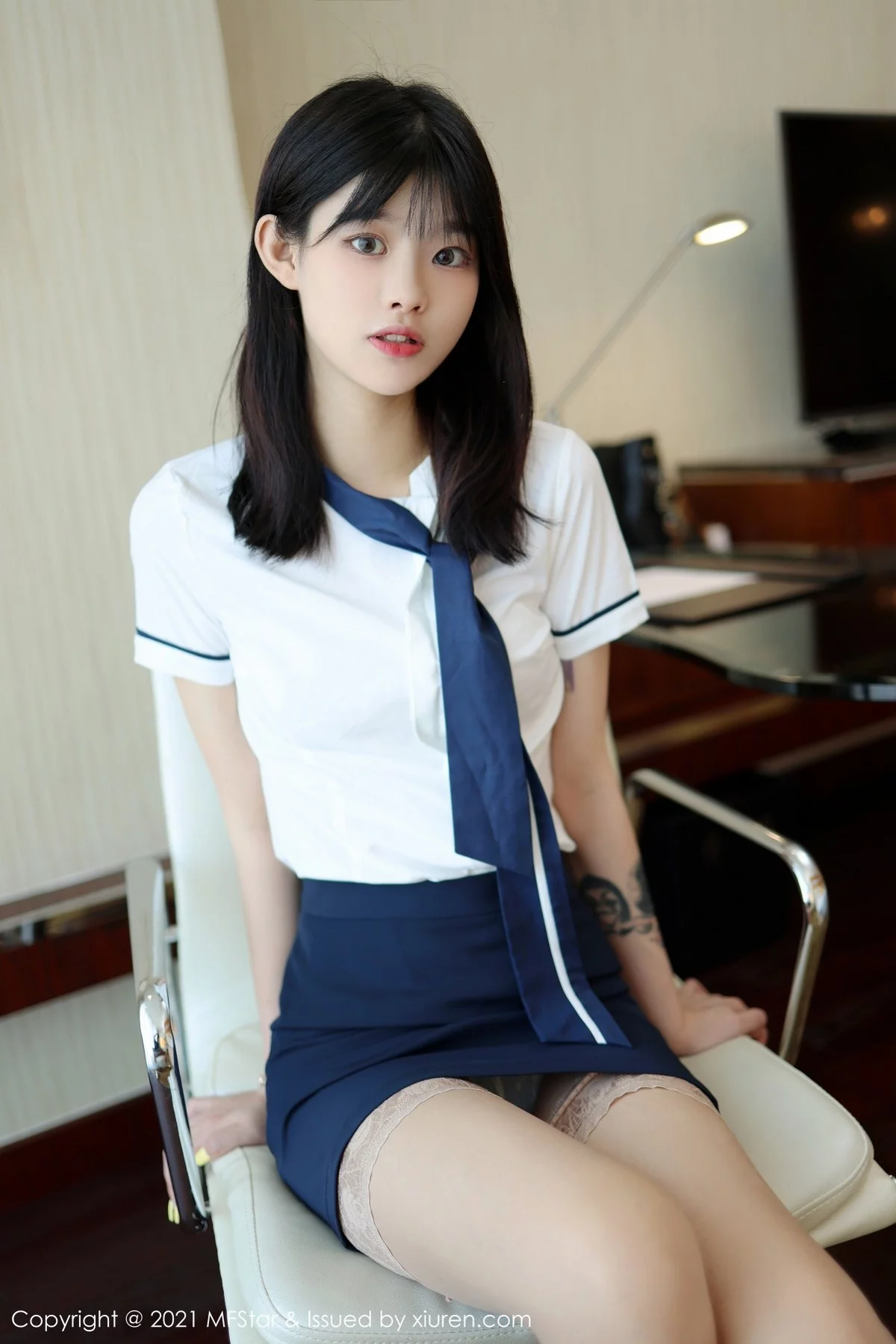 [MFStar模范学院]Vol.516_模特77qiqi校园风格学生装短裙下肉色蕾丝袜秀美腿诱惑写真46P