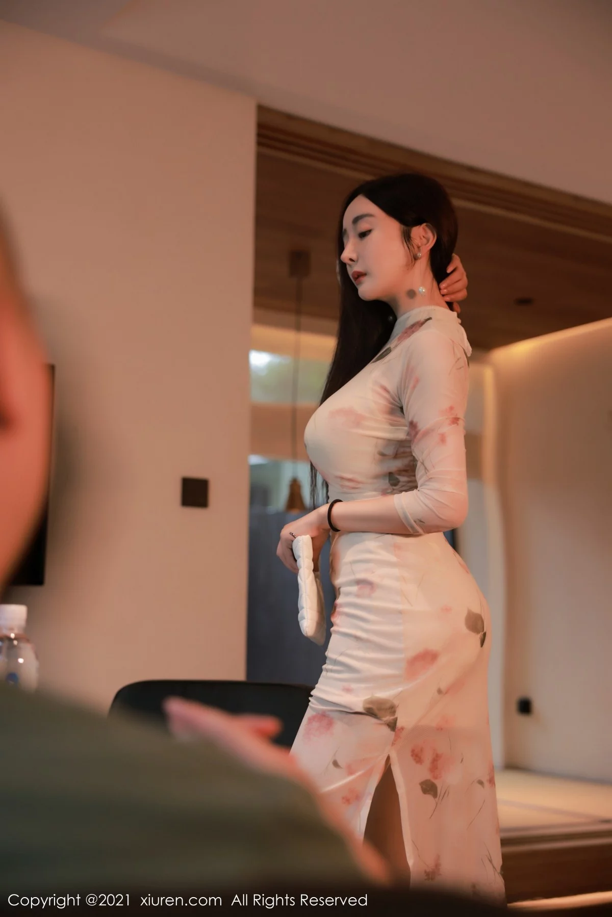 [XiuRen秀人网]No.3841_新人模特美桃酱杭州旅拍室外典雅浪漫旗袍配黑丝吊袜诱惑写真45P
